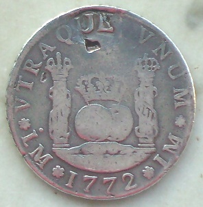 El taladro rebaja el valor de la moneda pero el parche lleva el valor a límites bajísimos, pues el taladro formó parte de la historia de la pieza mientras que el susodicho parche es un añadido fuera de su tiempo.