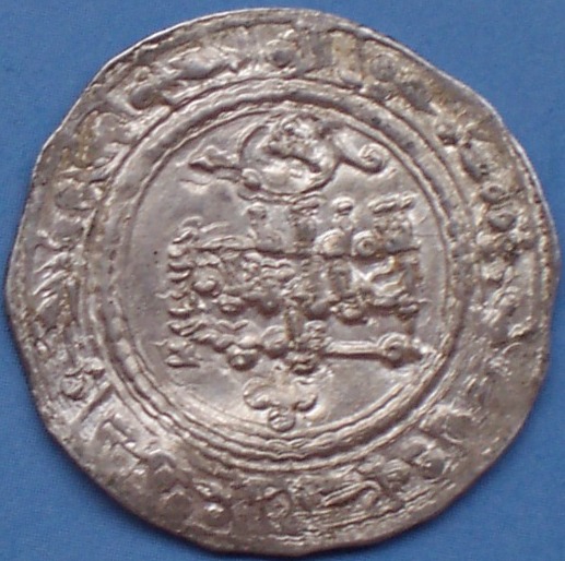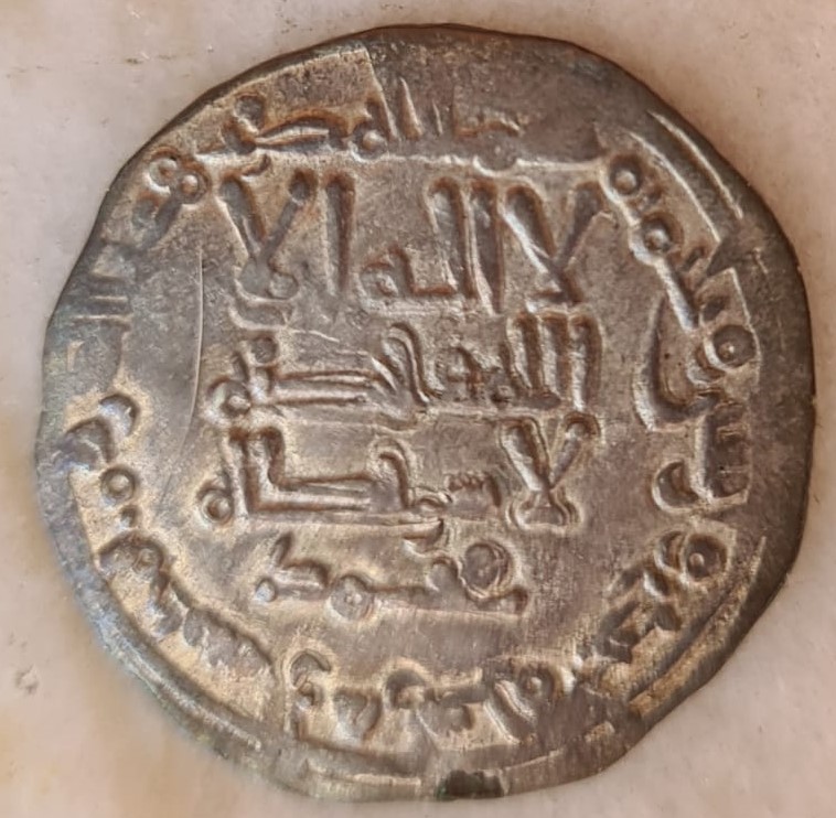 Lo normal en este año es que encontremos los dirhames con el inicio de la inscripción del anverso recto y en algunos casos, como este, curvo.