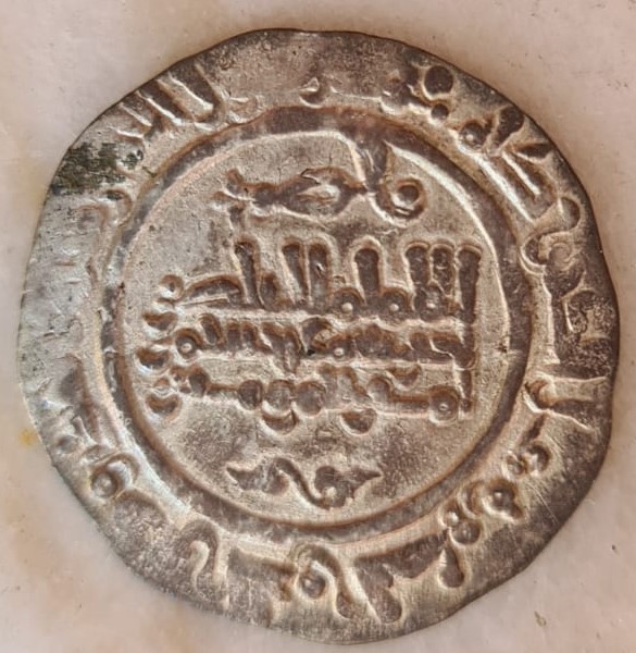 En este dírham podemos observar el brillo original en todas las superficies al margen de letras y adornos