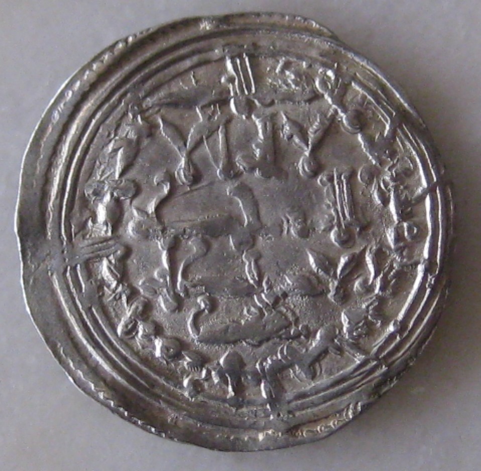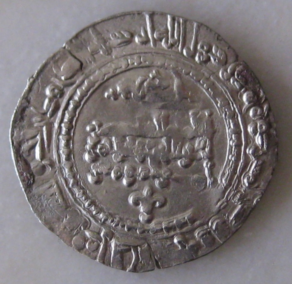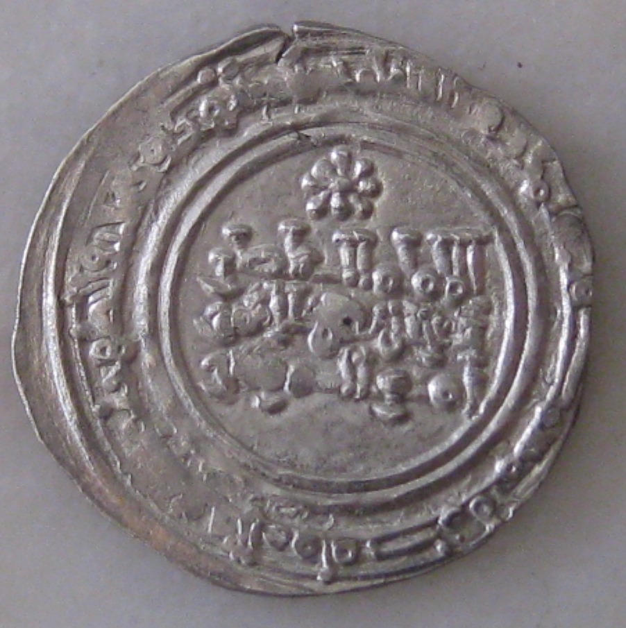 El último dírham puede llevar a engaño. Da la impresión de haber sido recortado pero no es así; lo que le ocurre es que el flan metálico sobre el que se acuñó era menor que el cuño, siendo precisamente de los denominados de gran módulo. Llama la atención la limpieza de la escritura.