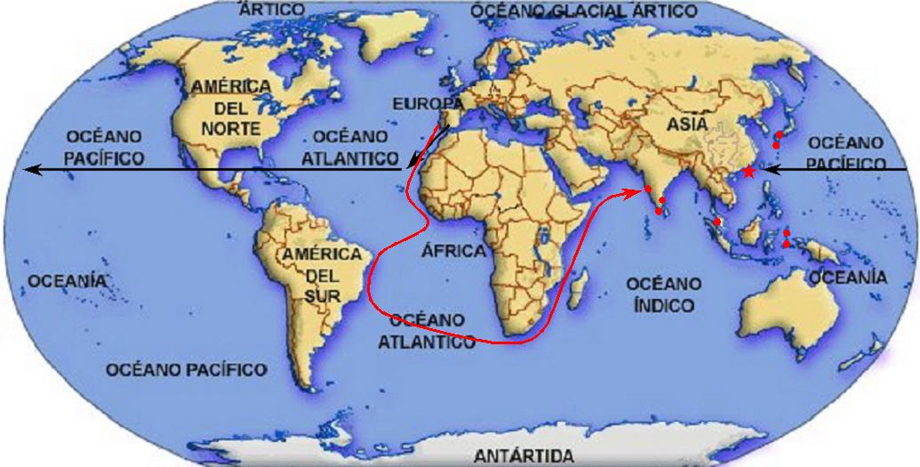 San Francisco Javier desarrolló s actividad misionera en países asiáticos. Sus viajes se pueden apreciar en el mapa adjunto:
